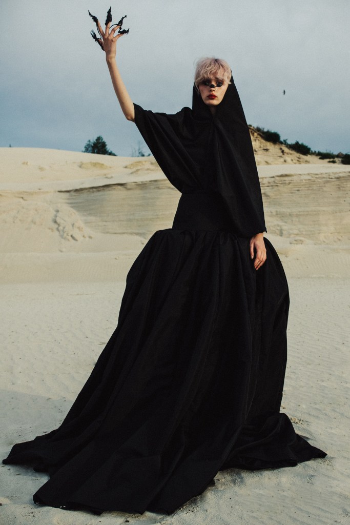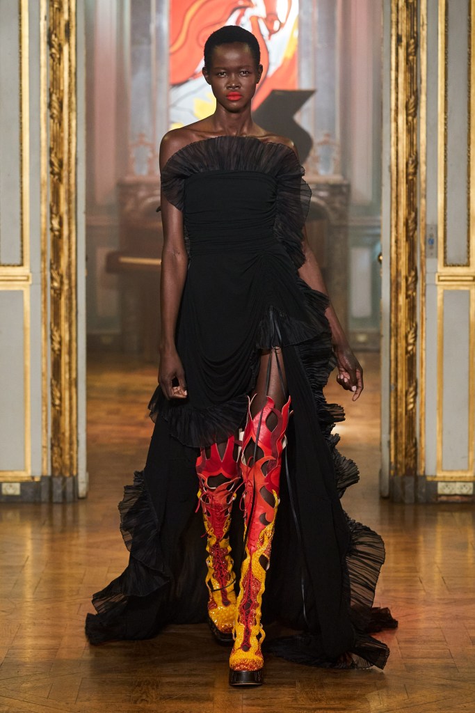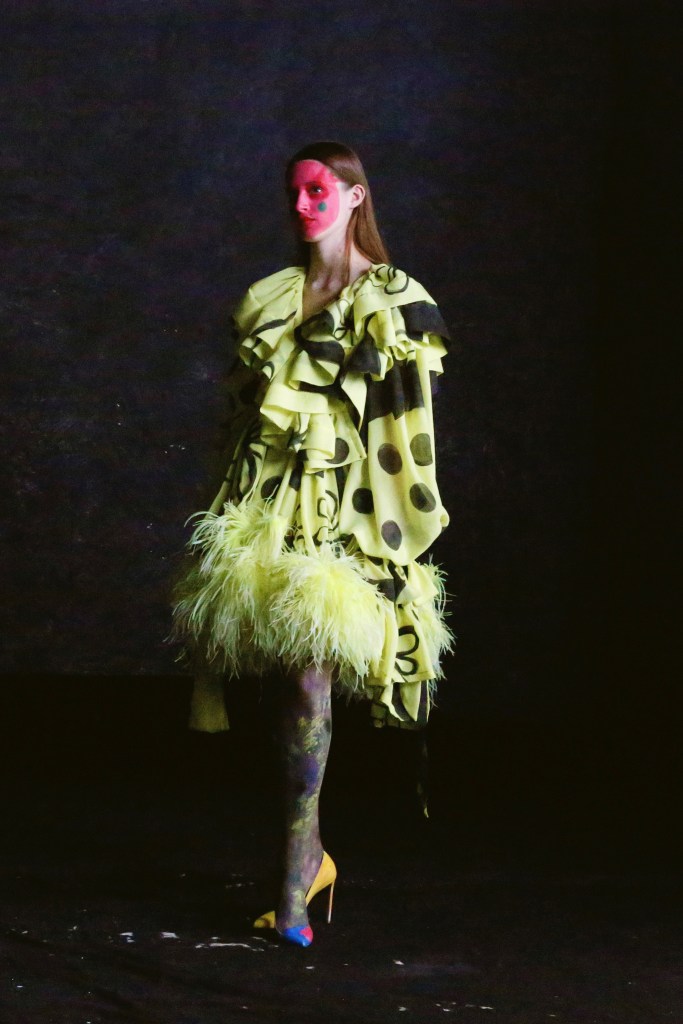 As peças parecem terem sido tomadas por corvos e imaginadas pela mente de Tim Burton. O estilista, no entanto, mantém o caráter artístico com o uso de penas, cortes complicados (que por vezes lembram tentáculos) e grandes brincos dourados. A coleção de Outono/Inverno Couture parece, em sua maioria, extremamente teatral, com silhuetas pomposas e gigantes. O mood aqui se apresenta como oposto da coleção anterior, uma desesperança e medo do que o futuro aguarda.