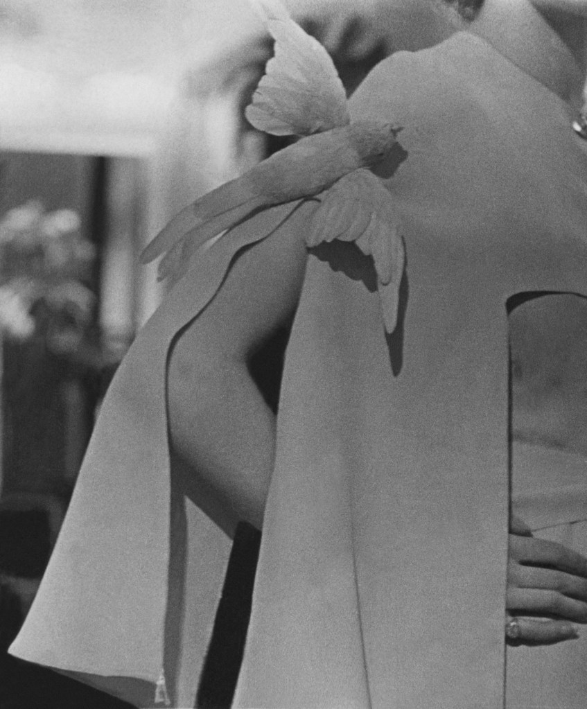 Vestido com passarinho no ombro, desenhado por Marcel Rochas, 1934. [Imagem: Helmut Hahn/ Vogue]