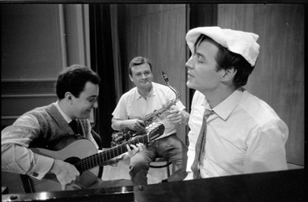 Antônio Carlos Jobim, João Gilberto, e Stan Getz ensaiando no Carnegie Hall [Foto: Reprodução Carnegie Hall]