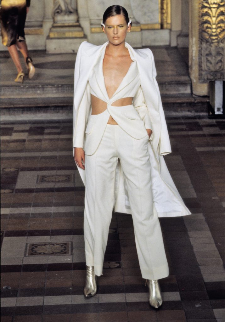 Peça confeccionada por Alexander McQueen para a Givenchy 一 coleção de Primavera/Verão 1997. [Imagem: Stella Tennant]