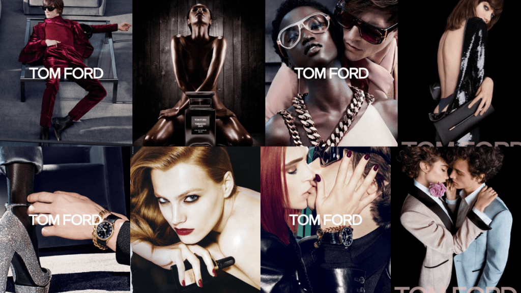 Nos 16 anos de marca, o sex appeal se manteve presente em cada corte, textura, cor, decote, tecido, acessório, maquiagem e até fragrância. O designer fez com que ao ser ouvido o nome “Tom Ford”, “sensualidade” seja a primeira coisa que vem à mente. Construiu uma identidade forte que liga suas criações com essa estética particular que o define.