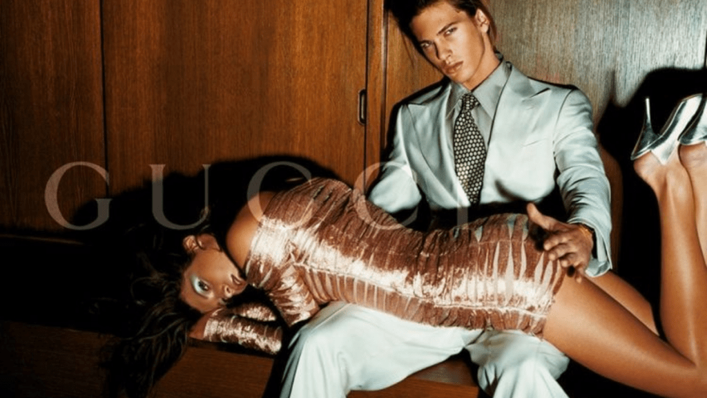 O sucesso da Gucci de Tom Ford se deu justamente no apelo sexual, algo extremamente ousado e pouco visto no cenário da moda até então. Tudo em sua era gritava “sexo”, desde as roupas até a trilha sonora dos desfiles e as campanhas publicitárias — afinal, foi ele quem colocou modelos na passarela com calcinhas e cuecas fio dentais na coleção de Primavera/Verão 1997.