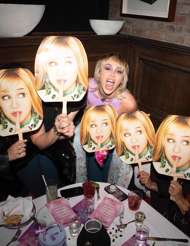 Além disso, a cantora também fez uma festa de comemoração toda temática da Hannah. “Festa de Hannahversário”, escreveu Miley nas redes sociais, que usou um look personalizado inspirado na personagem e com decoração caprichada, com direito a máscaras e até um enorme bolo em formato de guitarra rosa.