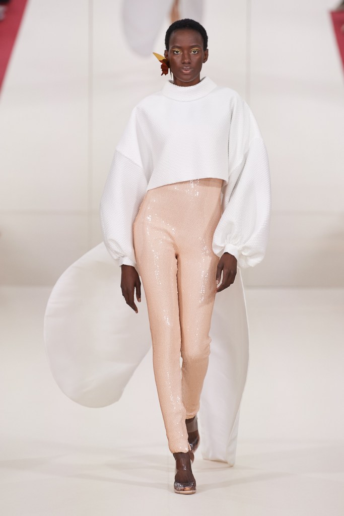 Em sua apresentação (26) com apenas 65 convidados, que respeitavam o distanciamento social e vestiam preto dos pés à cabeça, Pierpaolo demonstrou como a alta-costura consegue construir estonteantes silhuetas em qualquer tipo físico. ‘Keep the codes, but change the values’ uma referência clara em manter a qualidade no trabalho artístico e manual da alta-costura sem as amarras culturais dos valores do termo.