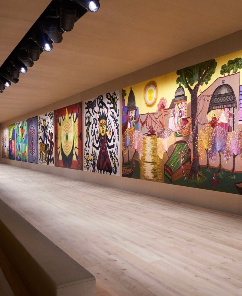 O segundo dia da semana de alta-costura começa com uma atmosfera imersiva na Chanel de Virginie Viard, para o cenário de apresentação a marca colaborou com o artista Xavier Veilhan para transformar a sala de desfiles. A coleção de Viard tem como sua maior inspiração a década de 1920, o que foi o bastante para inspirar o artista plástico na produção, se baseando nas Wold Fairs da década de 20 e em artistas como Sonia e Robert Delaunay: “Acho que na moda há sempre essa ideia de relação com a história, mas também de sempre renovar constantemente. Como artista, senti que poderia fornecer outra relação com o tempo.” Ele explica para o jornalista Hamish Bowles.
