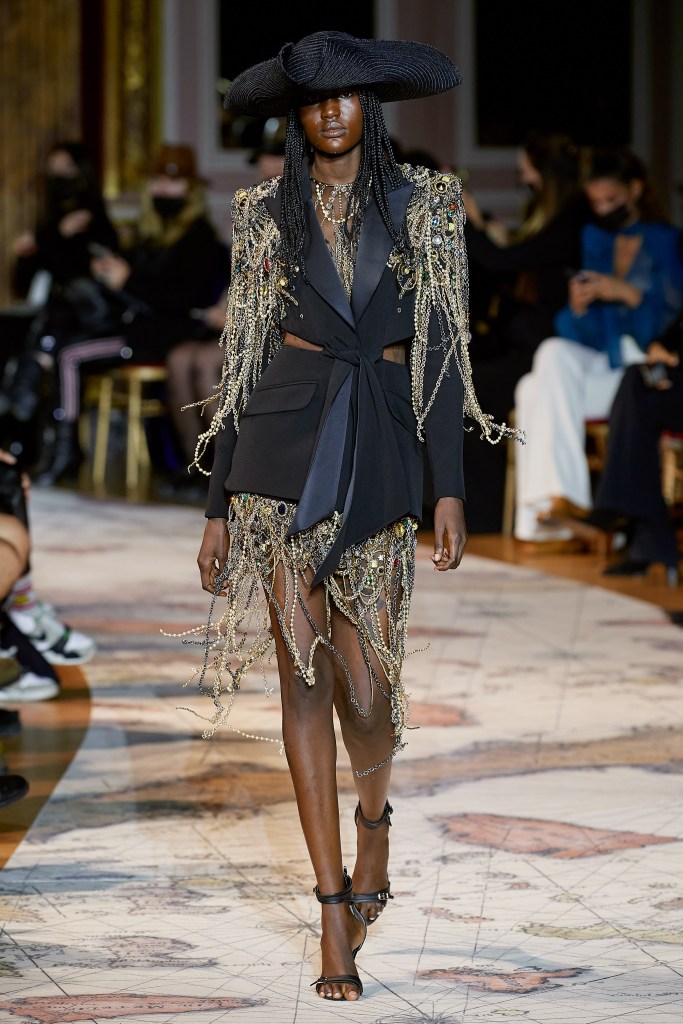 “Adoro a possibilidade de brincar com coisas que antes era mais tímido: paillettes, cristais, lantejoulas, disse ele, em prévia na sede da casa no oitavo arrondissement. Isso é uma coisa típica da Azzaro, e estou descobrindo como pode ser bonito. Parte disso se deve ao bom relacionamento de trabalho com a equipe do ateliê. Quando você entende a cultura, o que [o atelier] sabe fazer, você pode ter certeza que quando você faz um design, ele será feito corretamente.”