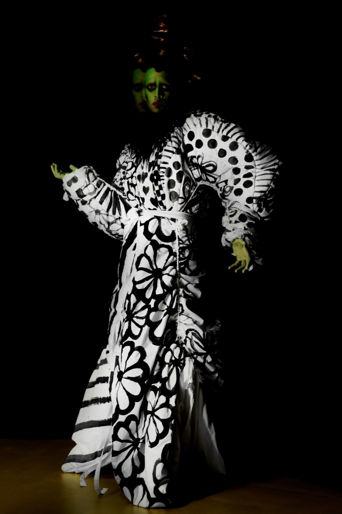 Ao pensar em alta-costura dificilmente associamos com o terror e uma imagética exótica do gênero, mas na verdade, como provamos no texto especial de halloween entre moda e horror, os filmes do gênero já foram utilizados inúmeras vezes como fonte primária de inspiração dentro da moda de luxo. Para seu desfile de Primavera Verão 2022, os fundadores e diretores criativos da marca Viktor Horsting and Rolf Snoeren se voltaram para o vampiresco, com ombros altos e costas largas, uma imagem não só lembrada pelo Tio Fester em Família Addams como uma referência a forma dos filmes da antiga Hollywood de retratar o vampiro mais famoso do cinema – Conde Drácula – a inspiração em todos os elementos dessa estética ficam bem claros ao decorrer da coleção, principalmente entre os looks de ternos com os ombros exagerados nos looks 1 e 13.