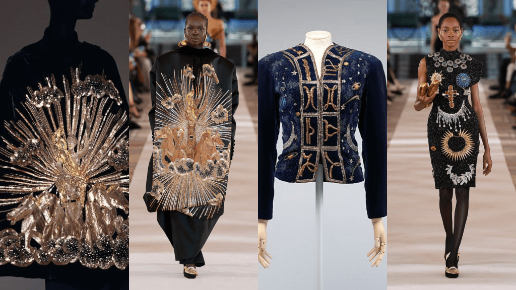 Em conjunto pela apreciação recorrente do designer com os arquivos de Schiaparelli, semelhanças como uma capa de 1938 inspirada na fonte do Palácio de Versalhes “Apollo”, e da coleção de Elsa Schiaparelli Zodiac e Cosmique de 1938 também, que entra no tema da coleção atual e seus cosmos.