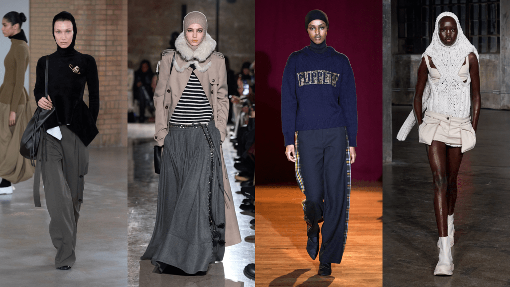 A tendência que já havia sido apontada pela Frenezi durante a temporada de Outono/Inverno 2022 de Copanhegem, segue em alta na NYFW. Originalmente pensada como um gorro que protege partes da face e orelhas contra o frio, o acessório foi repensado pelas fashionistas gringas de maneira a torná-lo mais funcional: na nova versão a face fica toda à mostra, cobrindo apenas orelhas e couro cabeludo. Se na temporada passada foi a vez das Balaclavas coloridas e texturizaras, nesta o acessório aparece em cores mais sóbrias e de maneira mais ajustada à cabeça, em tecidos elásticos ou acompladas à partes de cima. Proenza Schouler, Altuzarra, Puppets & Puppets e Dion Lee foram algumas das marcas que desfilaram o acessório.
