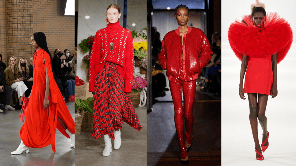 Gloria Groove e a NYFW mandaram avisar: vermelho é a cor da temporada. O lilás “Very Peri” pode até ter sido eleito a cor do ano pela Pantone, mas as passarelas de Outono/Inverno de Nova Iorque mostraram que é o vermelho vivo o tom marcante da estação. Presente em desfiles cuja cartela tinha base neutra — como Proenza Schouler, Jason Wu e Laquan Smith — a cor é aplicada em peças inteiras ou em looks “conjuntinho” de destaque no lineup, entregando um um visualpotente e acertivo. Para Carolina Herrera, que já desfila há décadas peças no seu clássicio vermelho “Carolina”, o momento não poderia ser menos favorável.