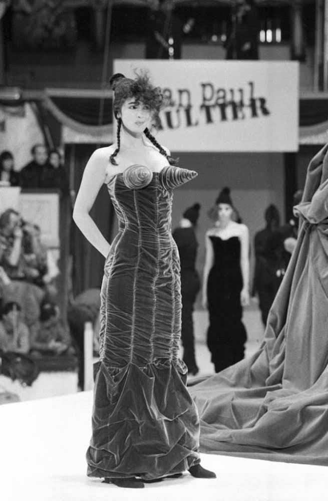 O legado surreal de Jean Paul Gaultier começou na temporada de outono-inverno de 1984. Uma silhueta única com veludo laranja e rosa, no vestido Bombshell Breasts. Adiante, atraiu com seu visual grandes nomes como Madonna com seu corset usado na tour Blond Ambition de 1990. Contudo, eles têm origem de uma memória afetiva do designer, os espartilhos de sua avó, e que foram primeiramente desenvolvidos para Nana, seu urso de pelúcia.