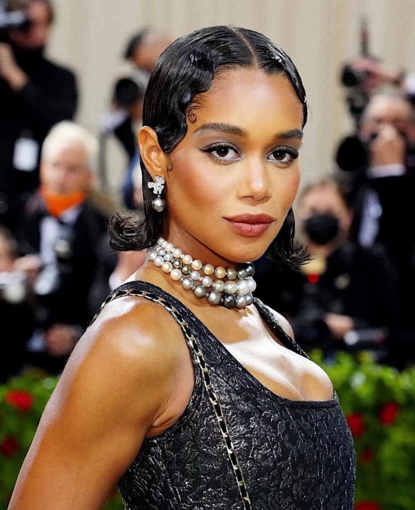 Laura levou o glamour do Old Money para seu visual, indo muito além de vestimentas e jóias. A atriz investiu em um penteado molhado com ondas estruturadas na raíz, e para a maquiagem o delineado gatinho (que agora volta à moda para evidenciar os cílios) e pele iluminada.