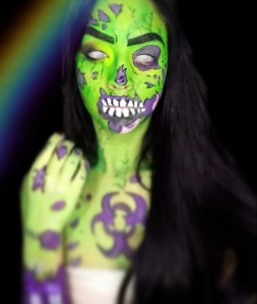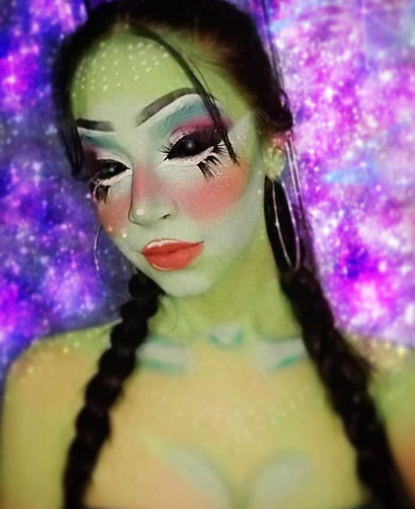 Sou formada em maquiagem profissional, mas também faço maquiagens artísticas, como a criação de personagens, Drag Queens, maquiagem de terror e sfx (próteses cênicas e efeitos especiais).