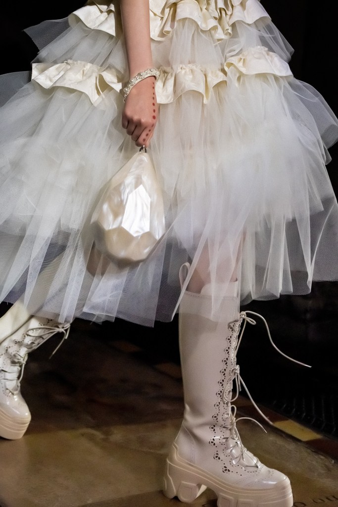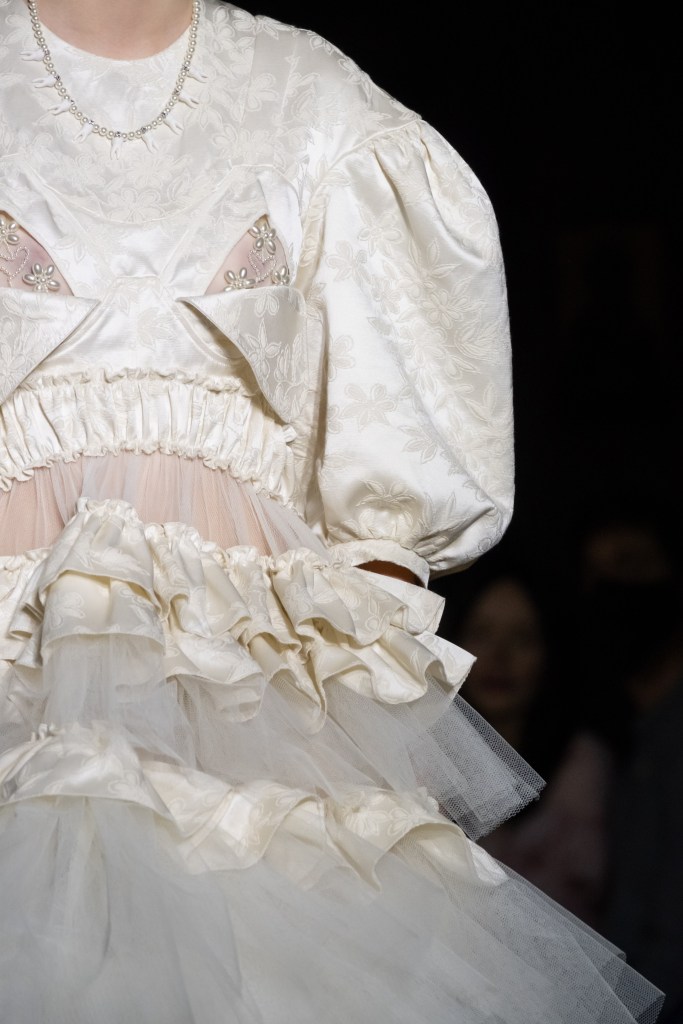 Assim como Simone Rocha, o grande nome da semana de moda de Londres mostra em suas coleções, sapatilhas adornadas, pérolas, cores claras, tulles e corpetes são alguns exemplos da estética clara da marca, tudo bem amarrado em uma paleta de cores claras, características observadas como movimento estético central da marca, mas principalmente das coleções referentes as temporadas de primavera verão 2022 e outono inverno 2020.