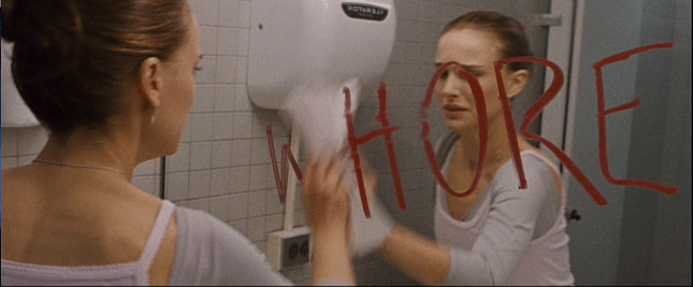 Esse estereótipo é visto em Cisne Negro (2010), o mais famoso dos filmes balletcore. Nina (Natalie Portman) é vista como uma “vadia” por ter conseguido o papel principal, sofrendo retaliação de outras bailarinas.