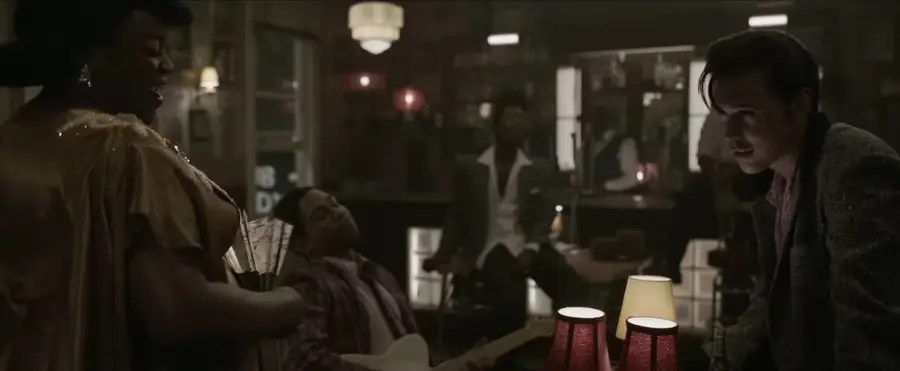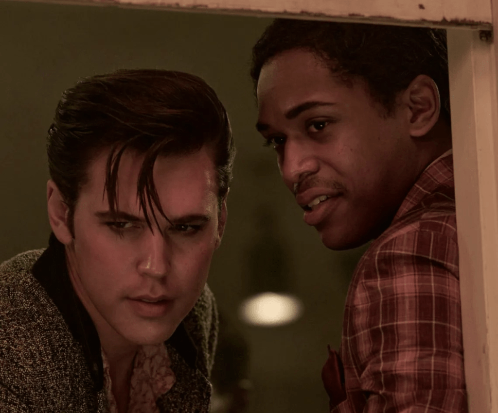 O cantor viveu boa parte de sua vida rodeado de pessoas negras – chamadas na época de pessoas de cor – e isso é bem retratado no filme que mostra, inclusive, a relação de Elvis e B.B King – interpretado por Kelvin Harrison. Foi na igreja de negros que ele aprendeu a dançar e rebolar, o que mais tarde viria a se tornar sua marca registrada.