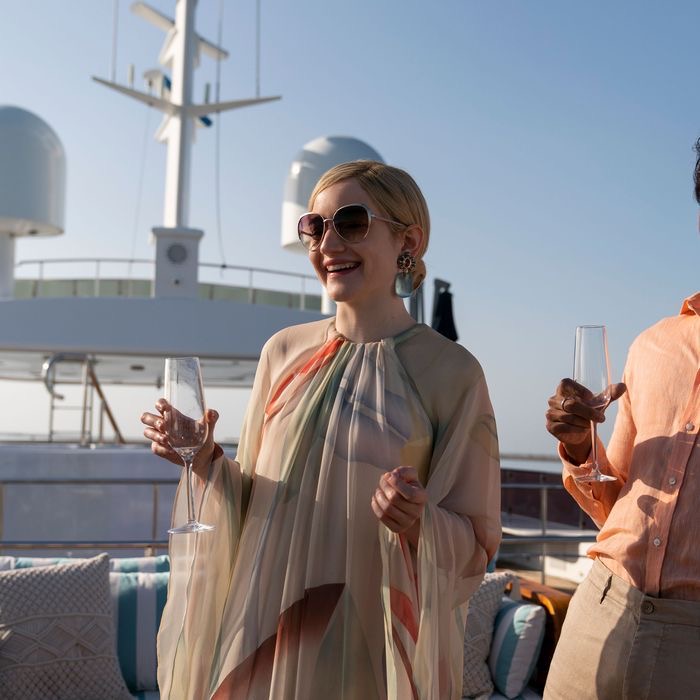 Um exemplo nítido desse feito é a transformação instantânea de Anna Delvey na série “Inventando Anna” (que foi um verdadeiro fenômeno quando foi lançada no início do ano). Ao ouvir que sua aparência, antes composta por ondulados cabelos loiros, maquiagem romântica e um estilo mais girlie, não condizia com a de uma mulher de negócios, séria e competente que gostaria de se transparecer ser para conquistar aliados e financiadores, Anna prontamente tratou de escurecer os fios, adotar óculos quadrados e de armação escura (contrariando seu contraste pessoal e gerando peso visual), apostar em peças de corte mais reto, tecidos mais firmes e uma postura mais formal. A forma como ela passou a ser percebida mudou instantaneamente, e isso aconteceu logo na primeira cena em que ela aparece com o novo visual, antes mesmo que o primeiro diálogo dela nessa nova fase fosse construído.